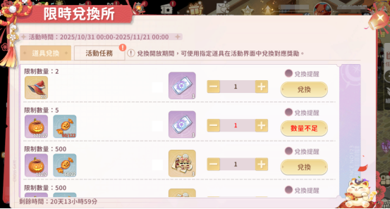 活動期間,冒險者於使用“女巫帽、南瓜頭、萬聖糖果” 兌換超值獎勵:純白嚇人箱碎片、原核結晶•純白嚇人箱、純白嚇人箱圖鑒卡、招財貓、原核結晶•招財貓、招財貓圖鑒卡、火焰舞者、滿檔火焰舞者、原核結晶·火焰舞者、火焰舞者圖鑒卡、鼠王刮刮樂獎券、情緒藥水、性格糖果、幸運貼紙、國風家俱隨機禮盒、魔龍之心等