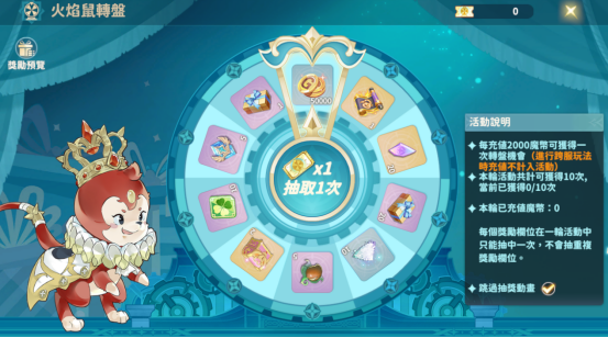 註:11月14日0點開啟第二輪轉盤,儲值後需要重登才能顯示次數喔~