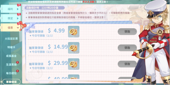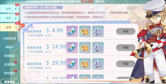 活動期間(11月14日),冒險者單筆儲值魔幣,可領取大量金幣、寵物圖鑒碎片獎勵喔