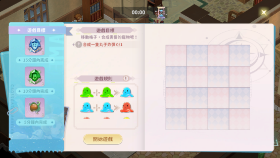 通過上下左右滑動格子,將寵物合成更高級的寵物,在規定時間內合成一隻[炸彈丸子]即為挑戰成功!挑戰用時越短,獎勵越豐富喔!