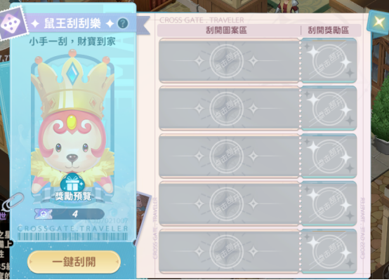 活動期間擁有刮刮樂獎券可以刮取獎勵,獎勵包括:滿檔綠先生、滿檔火焰舞者、滿檔圍巾兔、史萊姆王、米諾陶斯、兔小糖、神盾、超級改造技能(超級魔制、超級逃生、超級逆守、超級護佑、超級虛影)、金幣、魔塵、女巫帽、情緒藥水、性格糖果、幸運貼紙等
